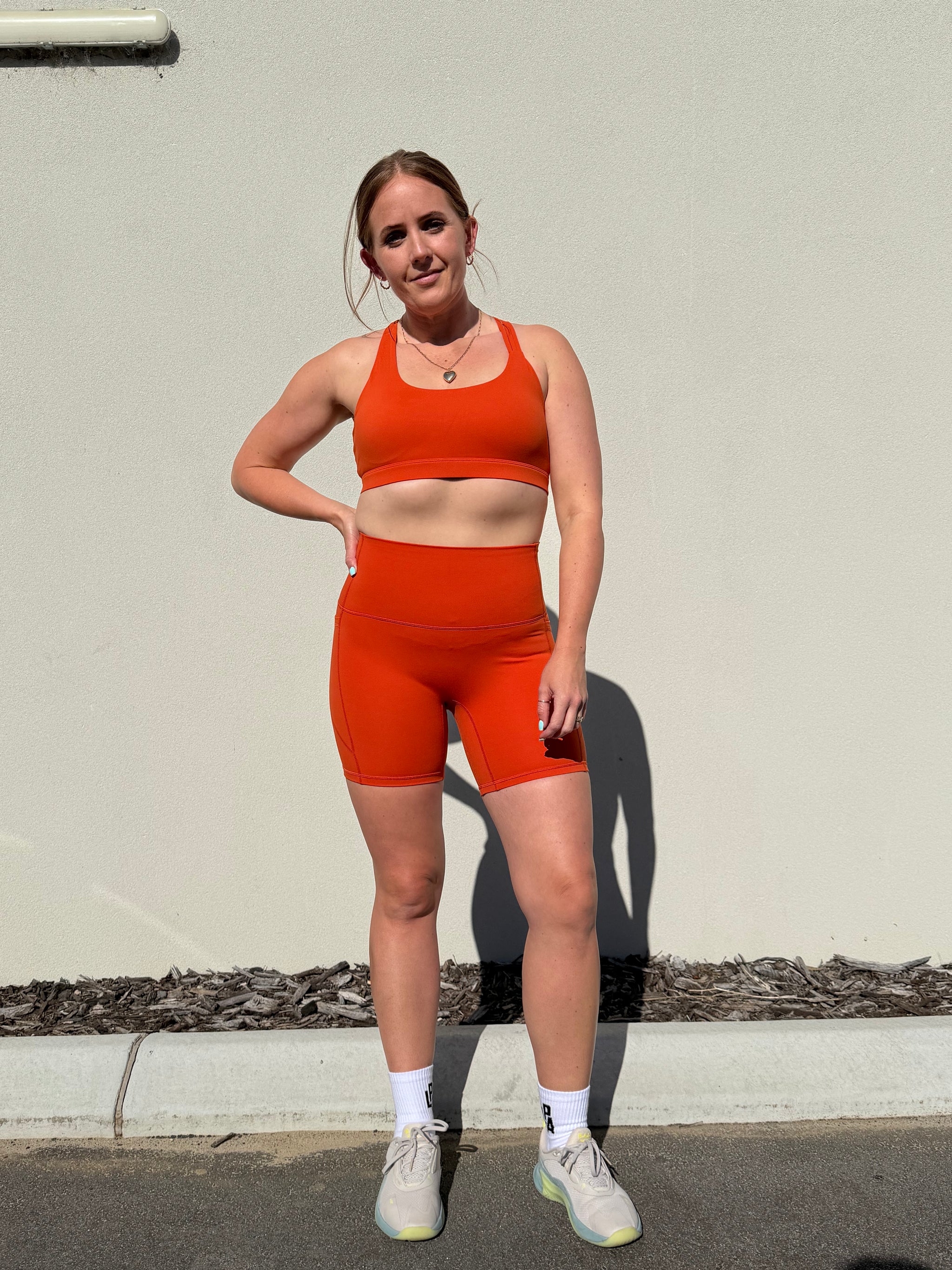 Made from a luxe 220GSM blend of 75% Nylon and 25% Spandex, these shorts deliver that signature nude, buttery-soft feel you’ll never want to take off. Designed to sculpt and move with your body, they feature a flattering high waistband and side pockets perfect for your phone, keys, or gym essentials.